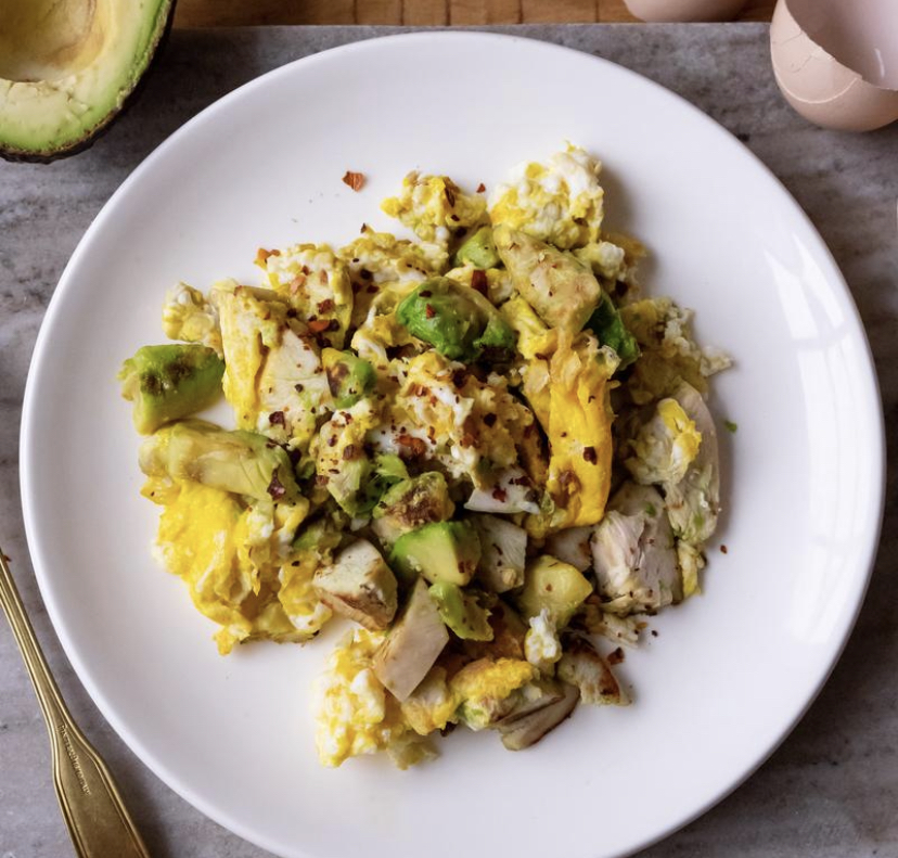 Příprava: Kuřecí maso nakrájíme na malé kousky a opečeme na trošce oleje, avokádo rozkrojte na pul , nakrájejte na malé kousky a orestujte společně s kuřecím masem a kokosovým olejem, dochuťte solí a pepřem, po pár minutách přidejte dvě vejce a rozmíchejte. Případně dosolte a přidejte chilli :)